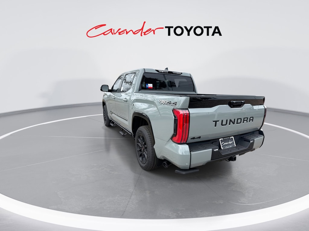 Welcome to Cavender Toyota, a Cavender Auto Family dealership. This vehicle is located at 5730 NW Loop 410, San Antonio, TX 78238. Here at Cavender, we build relationships based on trust and integrity to exceed your expectations in your ownership experience. Quite simply, we strive to Make Confidence Happen! So stop by and allow us to serve your automotive needs; we would love to meet you.Lunar Rock 2026 Toyota Tundra Platinum TRD Off Road 4WD 10-Speed Automatic 3.4L V6Features: TRD Off-Road Package (Multi-Terrain Back Monitor and Wheels: : 20" TRD Alloy), 4WD, Black w/Premium Leather Seat Trim, ABS brakes, Active Cruise Control, Alloy wheels, Electronic Stability Control, Front dual zone A/C, Heated door mirrors, Heated front seats, Illuminated entry, Low tire pressure warning, Navigation System, Remote keyless entry, Traction control, 3.31 Axle Ratio, 4-Wheel Disc Brakes, Air Conditioning, AM/FM radio: SiriusXM, Apple CarPlay/Android Auto, Auto High-beam Headlights, Auto-dimming door mirrors, Auto-dimming Rear-View mirror, Automatic temperature control, Brake assist, Bumpers: body-color, Delay-off headlights, Driver door bin, Driver vanity mirror, Dual front impact airbags, Dual front side impact airbags, Emergency communication system: Safety Connect (up to 10-year trial subscription), Exterior Parking Camera Rear, Front anti-roll bar, Front Bucket Seats, Front Center Armrest, Front fog lights, Front reading lights, Front wheel independent suspension, Fully automatic headlights, Garage door transmitter: HomeLink, Knee airbag, Leather Shift Knob, Leather steering wheel, Memory seat, Navigation system: Drive Connect Cloud Navigation (1-year trial subscription), Occupant sensing airbag, Outside temperature display, Overhead airbag, Overhead console, Panic alarm, Passenger door bin, Passenger vanity mirror, Power door mirrors, Power driver seat, Power passenger seat, Power steering, Power windows, Radio data system, Rear reading lights, Rear seat center armrest, Rear step bumper, Rear window defroster, Safety Connect, Security system, Speed control, Speed-sensing steering, Split folding rear seat, Steering wheel mounted audio controls, Tachometer, Telescoping steering wheel, Tilt steering wheel, Trip computer, Turn signal indicator mirrors, Variably intermittent wipers, Ventilated front seats, and Voltmeter.