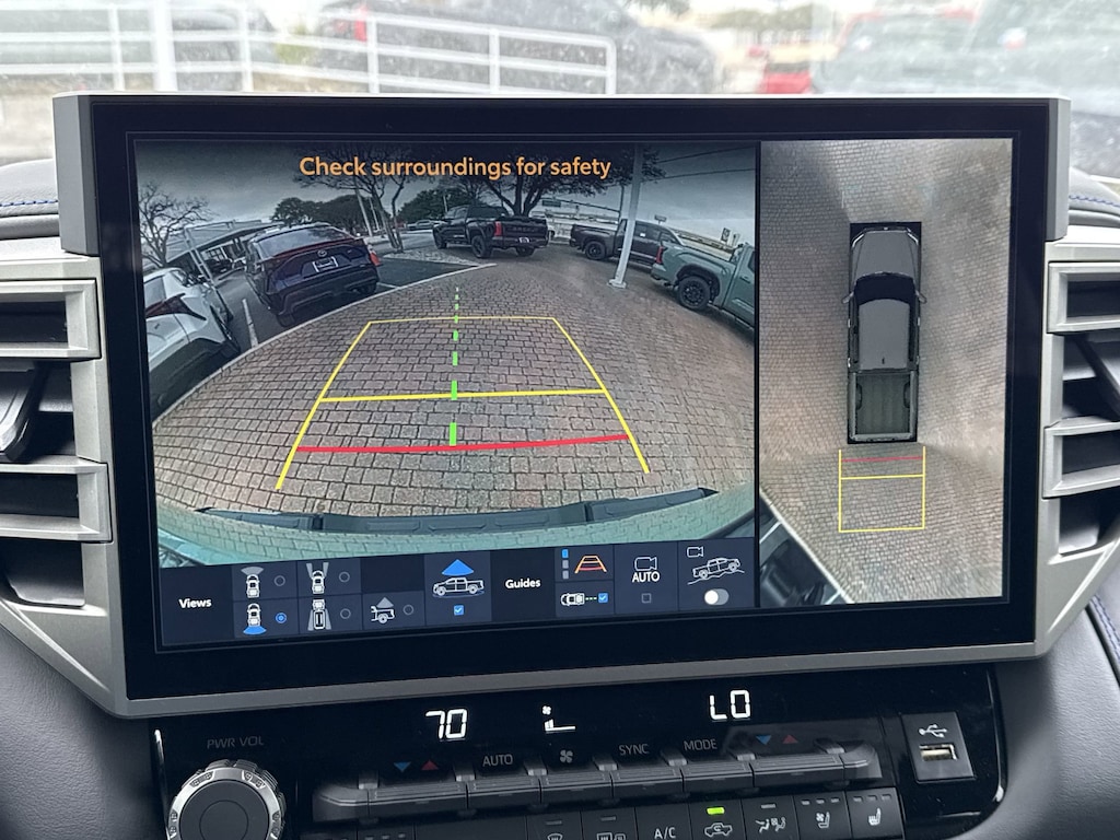 - Backup camerawith projected path.The backup camera does not provide a comprehensive view. Always look over shoulder and use outside mirrors. See. Owner's. Manual. For limitations.