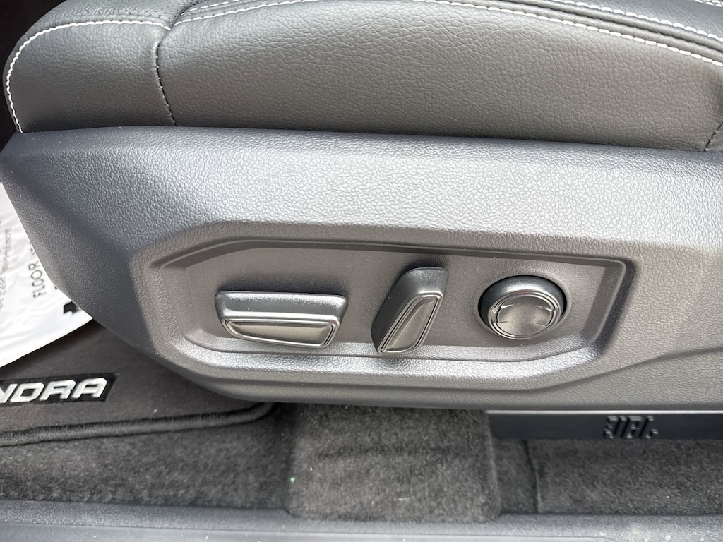 - Leather-trimmed seats with contrast stitching; 8-way power-adjustable driver and front passenger seats with power-adjustable lumbar support.