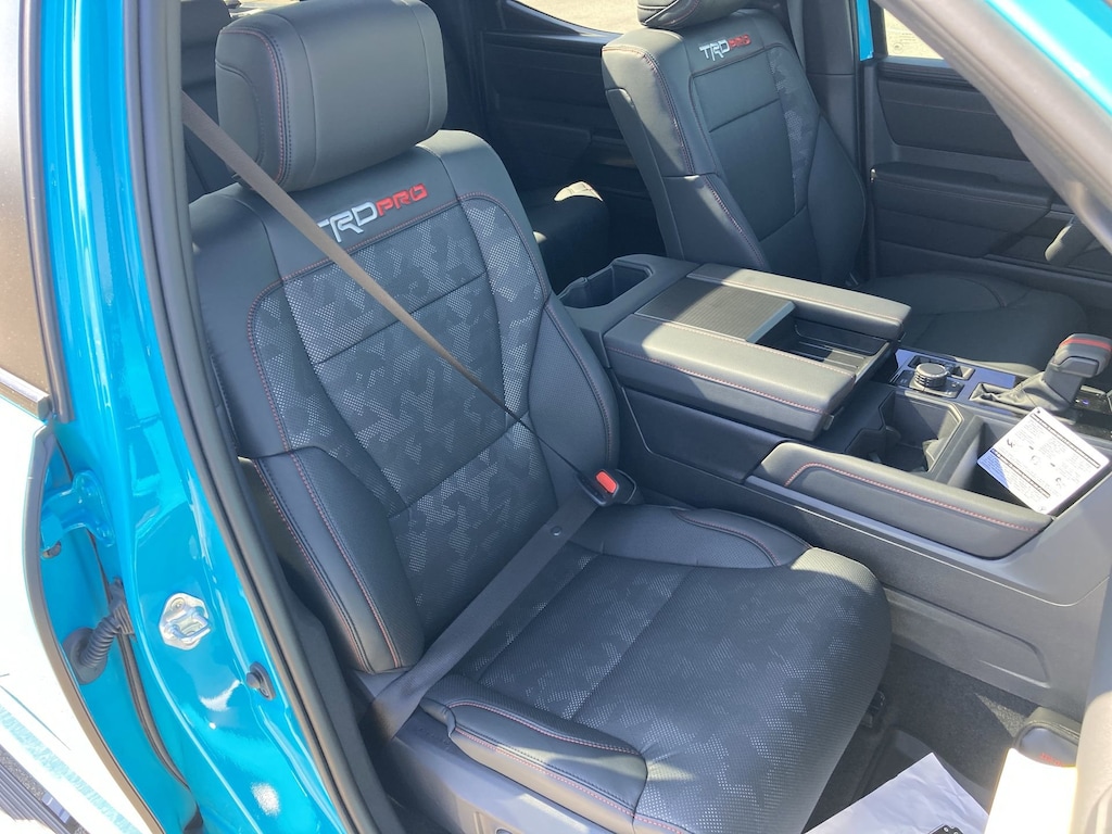 - Trd pro softex®-trimmed seats with contrast stitching and technical-camo-pattern inserts; 8-way power-adjustable driver and front passenger seats with power-adjustable lumbar support.