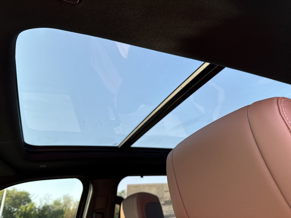 - Leather-wrapped power tilt/telescopic steering wheel with phone, audio, display/infotainment, and driver assist controls.