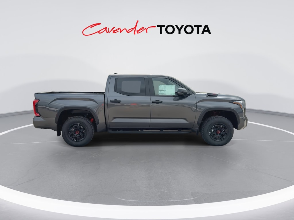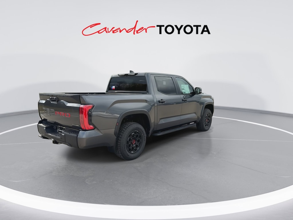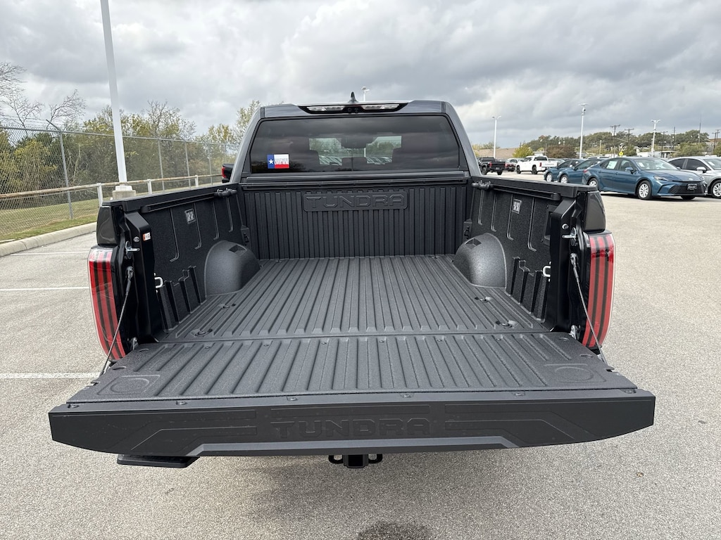 Welcome to Cavender Toyota, a Cavender Auto Family dealership. This vehicle is located at 5730 NW Loop 410, San Antonio, TX 78238. Here at Cavender, we build relationships based on trust and integrity to exceed your expectations in your ownership experience. Quite simply, we strive to Make Confidence Happen! So stop by and allow us to serve your automotive needs; we would love to meet you.Magnetic Gray Metallic 2026 Toyota Tundra Hybrid TRD Pro 4WD 10-Speed Automatic 3.4L V6Features: TRD Pro Package, 3.4L V6, 12 Speakers, 3.31 Axle Ratio, 4-Wheel Disc Brakes, ABS brakes, Air Conditioning, Alloy wheels, AM/FM radio: SiriusXM, Apple CarPlay/Android Auto, Auto High-beam Headlights, Auto-dimming door mirrors, Auto-dimming Rear-View mirror, Automatic temperature control, Brake assist, Bumpers: body-color, Delay-off headlights, Driver door bin, Driver vanity mirror, Dual front impact airbags, Dual front side impact airbags, Electronic Stability Control, Emergency communication system: Safety Connect (up to 10-year trial subscription), Exterior Parking Camera Rear, Front anti-roll bar, Front Bucket Seats, Front Center Armrest, Front dual zone A/C, Front fog lights, Front reading lights, Front wheel independent suspension, Fully automatic headlights, Garage door transmitter: HomeLink, Heated door mirrors, Heated front seats, Illuminated entry, Knee airbag, Leather Shift Knob, Leather steering wheel, Low tire pressure warning, Memory seat, Navigation system: Drive Connect Cloud Navigation (1-year trial subscription), Occupant sensing airbag, Outside temperature display, Overhead airbag, Overhead console, Panic alarm, Passenger door bin, Passenger vanity mirror, Power door mirrors, Power driver seat, Power moonroof, Power passenger seat, Power steering, Power windows, Radio data system, Rear reading lights, Rear seat center armrest, Rear step bumper, Rear window defroster, Remote keyless entry, Security system, SofTex Seat Trim, Speed control, Speed-sensing steering, Split folding rear seat, Sport steering wheel, Steering wheel mounted audio controls, Tachometer, Telescoping steering wheel, Tilt steering wheel, Traction control, Trip computer, Turn signal indicator mirrors, Variably intermittent wipers, Ventilated front seats, Voltmeter, and Wheels: 18" Black Forged Aluminum BBS.