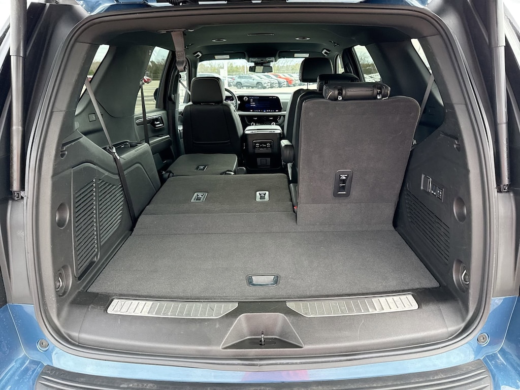 Cavender Certified Pre-Owned Program Built-in Benefits: Limited Powertrain Warranty for your peace of mind. Coverage includes components for engine, transmission and axles (for specific component coverage, please speak with a dealer representative). 24/7 Roadside Assistance â" No out-of-pocket costs for customers towed to our dealership (if located within 30 miles), lockout assistance, jump start, fuel and fluid delivery, flat tire changes, available 365 days/year, up to $100 maximum coverage per roadside incident. A Vehicle History Report is included with every Cavender Certified Pre-Owned vehicle to offer you Confidence knowing that the vehicle you are purchasing is right for you and the road ahead. (Limitation and exclusions apply. Please refer to your Limited Warranty Registration for full coverage information.) The Cavender Auto Family, proudly serving our communities since 1939, and we look forward to serving you! - Equipment: Preferred Equipment Group 1LZ (1st and 2nd Row Color-Keyed Carpeted Floor Mats, 20" x 9" Polished Aluminum Wheels, 3-Spoke Wrapped Steering Wheel, 3rd Row 60/40 Power-Folding Split-Bench Seat, Auto-Dimming Inside Rear-View Mirror, Bose 10-Speaker Centerpoint Surround Audio System Feature, Bright Front and Rear Door Sill Plates, Chrome Door Handles with Body-Color Strip, Color-Keyed Carpeting Floor Covering, Dual Exhaust System, Floor Console, Front Bucket Seats, Front LED Fog Lamps, Front Pedestrian and Bicyclist Braking, Frontal Driver and Outboard Passenger Airbags, Heated 2nd Row Outboard Seats, Heated Steering Wheel, LED Headlamps with LED Daytime Running Lamps, LED Tail Lamps, Magnetic Ride Control Suspension, Memory Settings, Outside Heated Power-Adjustable Mirrors, Power Release 2nd Row Bucket Seats, Power Tilt and Telescopic Steering Column, Rear Power Liftgate, Remote Start, SiriusXM with 360L Trial Subscription, Universal Home Remote, and Wireless Phone Charging), 4WD, Jet Black w/Perforated Leather Seat Trim, 10 Speakers, 3.23 Rear Axle Ratio, 3rd row seats: split-bench, 4-Way Power Driver Lumbar Seat Adjuster, 4-Way Power Front Passenger Lumbar Seat Adjuster, 4-Wheel Disc Brakes, 8-Way Power Driver Seat Adjuster, 8-Way Power Front Passenger Seat Adjuster, ABS brakes, Adaptive suspension, Air Conditioning, Alloy wheels, AM/FM radio: SiriusXM with 360L, Apple CarPlay/Android Auto, Auto High-beam Headlights, Auto-dimming door mirrors, Auto-dimming Rear-View mirror, Auto-leveling suspension, Automatic temperature control, Brake assist, Bumpers: body-color, Compass, Delay-off headlights, Driver and Front Passenger Heated and Ventilated Seats, Driver door bin, Driver vanity mirror, Dual front impact airbags, Dual front side impact airbags, Electronic Stability Control, Emergency communication system: OnStar and Chevrolet connected services capable, Exterior Parking Camera Rear, Four wheel independent suspension, Front anti-roll bar, Front Center Armrest, Front dual zone A/C, Front fog lights, Front reading lights, Fully automatic headlights, Garage door transmitter, Heated door mirrors, Heated Driver and Front Passenger Seats, Heated front seats, Heated rear seats, Heated steering wheel, Illuminated entry, Low tire pressure warning, Memory seat, Navigation system: Google built-in compatibility (select service plan required, terms and limitations apply), Occupant sensing airbag, Outside temperature display, Overhead airbag, Overhead console, Panic alarm, Passenger door bin, Passenger vani