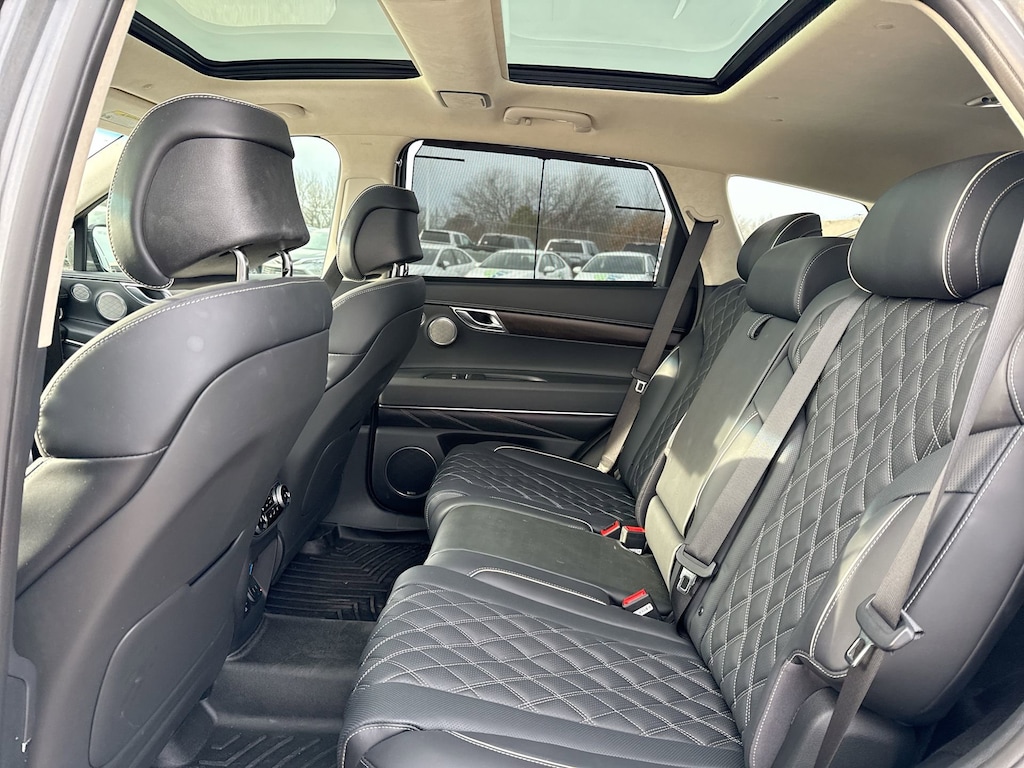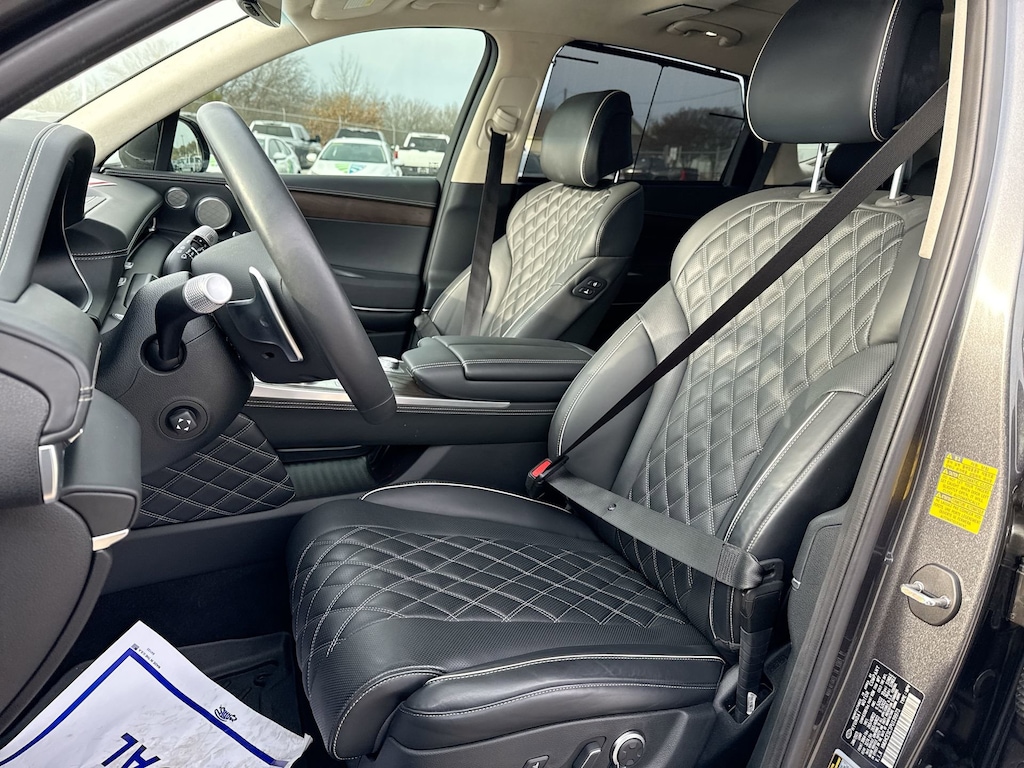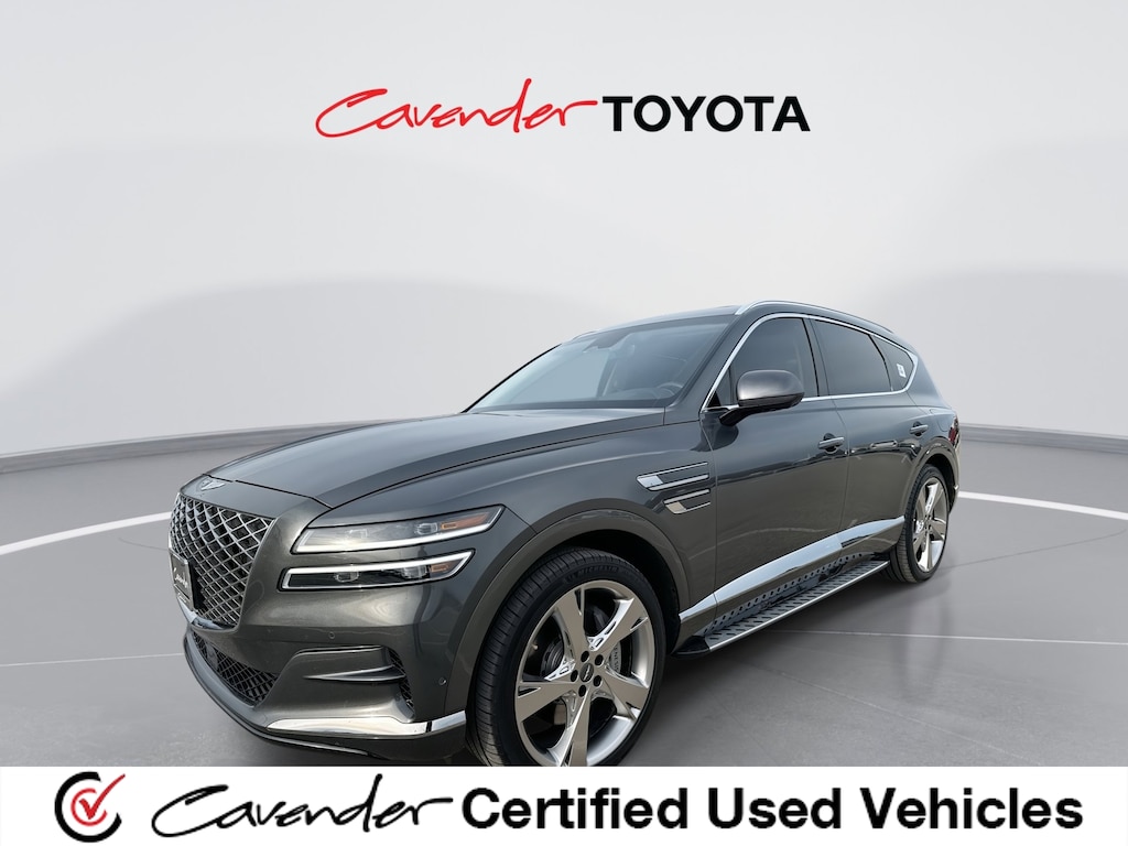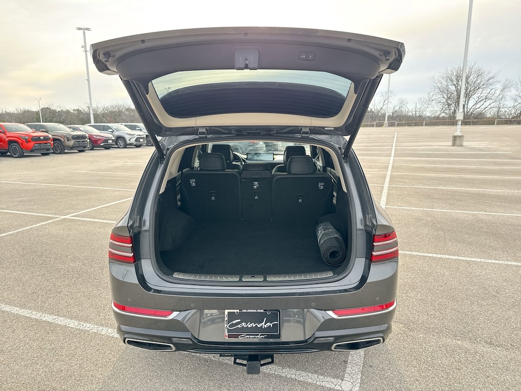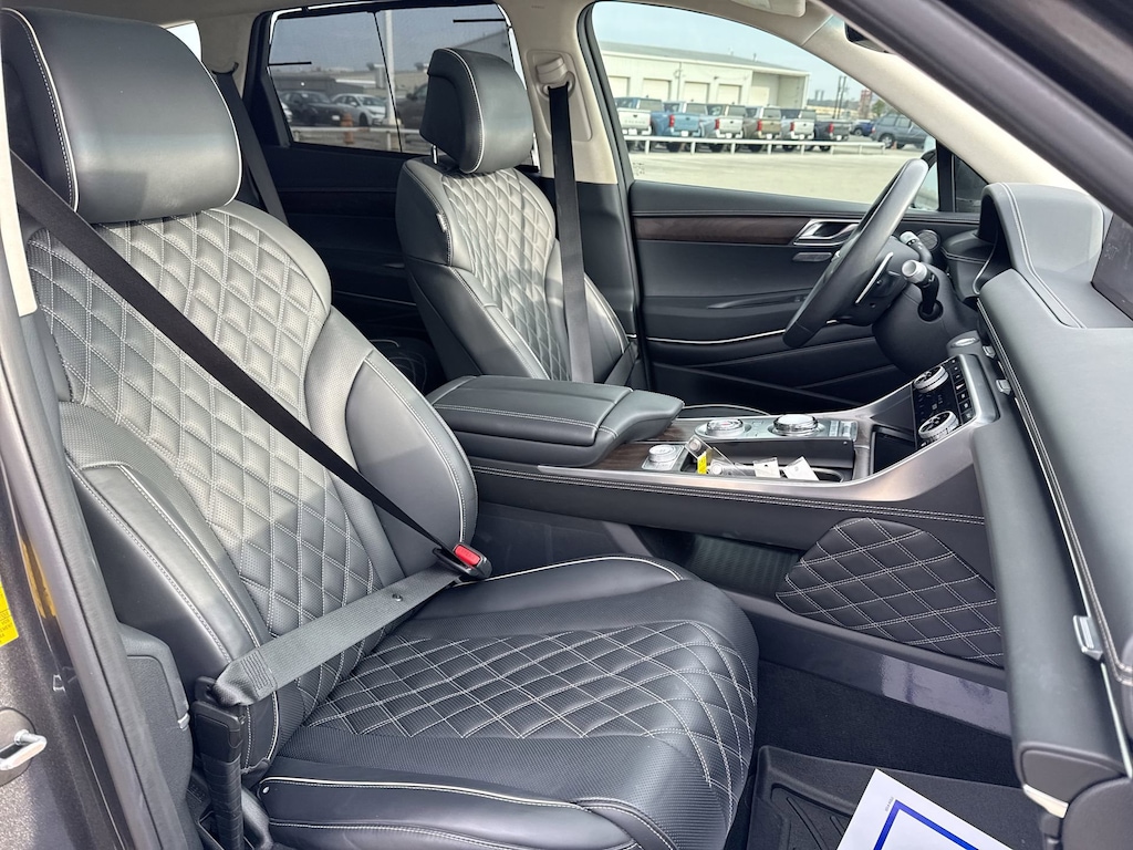 Cavender Certified Pre-Owned Program Built-in Benefits: Limited Powertrain Warranty for your peace of mind. Coverage includes components for engine, transmission and axles (for specific component coverage, please speak with a dealer representative). 24/7 Roadside Assistance â" No out-of-pocket costs for customers towed to our dealership (if located within 30 miles), lockout assistance, jump start, fuel and fluid delivery, flat tire changes, available 365 days/year, up to $100 maximum coverage per roadside incident. A Vehicle History Report is included with every Cavender Certified Pre-Owned vehicle to offer you Confidence knowing that the vehicle you are purchasing is right for you and the road ahead. (Limitation and exclusions apply. Please refer to your Limited Warranty Registration for full coverage information.) The Cavender Auto Family, proudly serving our communities since 1939, and we look forward to serving you! - Equipment: Advanced Package (Option Group 06), Prestige Package, ABS brakes, Active Cruise Control, Alloy wheels, Compass, Electronic Stability Control, Front dual zone A/C, Heated & Ventilated Front Bucket Seats, Heated door mirrors, Heated front seats, Illuminated entry, Low tire pressure warning, Power Liftgate, Power moonroof, Remote keyless entry, Traction control, 12 Speakers, 3.909 Axle Ratio, 4-Wheel Disc Brakes, Adaptive suspension, Air Conditioning, AM/FM radio: SiriusXM, Android Auto & Apple CarPlay, Anti-whiplash front head restraints, Auto High-beam Headlights, Auto tilt-away steering wheel, Auto-dimming door mirrors, Auto-dimming Rear-View mirror, Automatic temperature control, Brake assist, Bumpers: body-color, Delay-off headlights, Driver door bin, Driver vanity mirror, Dual front impact airbags, Dual front side impact airbags, Emergency communication system: Genesis Connected Services, Exterior Parking Camera Rear, Four wheel independent suspension, Front anti-roll bar, Front Bucket Seats, Front Center Armrest, Front reading lights, Fully automatic headlights, Garage door transmitter: HomeLink, Genuine wood console insert, Genuine wood dashboard insert, Genuine wood door panel insert, Heated steering wheel, Knee airbag, Leather steering wheel, Leatherette Seating Surfaces, Memory seat, Occupant sensing airbag, Outside temperature display, Overhead airbag, Overhead console, Panic alarm, Passenger door bin, Passenger vanity mirror, Power door mirrors, Power driver seat, Power passenger seat, Power steering, Power windows, Radio data system, Radio: AM/FM/SiriusXM/HD Audio System, Rain sensing wipers, Rear air conditioning, Rear anti-roll bar, Rear reading lights, Rear seat center armrest, Rear side impact airbag, Rear window defroster, Rear window wiper, Security system, Speed control, Speed-sensing steering, Speed-Sensitive Wipers, Split folding rear seat, Spoiler, Steering wheel memory, Steering wheel mounted audio controls, Tachometer, Telescoping steering wheel, Tilt steering wheel, Trip computer, Turn signal indicator mirrors, Variably intermittent wipers, Ventilated front seats, and Wheels: 20" x 8.5J Medium Metallic Gray Alloy.