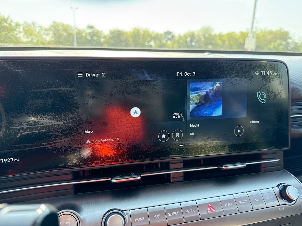 Cavender Certified Pre-Owned Program Built-in Benefits: Limited Powertrain Warranty for your peace of mind. Coverage includes components for engine, transmission and axles (for specific component coverage, please speak with a dealer representative). 24/7 Roadside Assistance â" No out-of-pocket costs for customers towed to our dealership (if located within 30 miles), lockout assistance, jump start, fuel and fluid delivery, flat tire changes, available 365 days/year, up to $100 maximum coverage per roadside incident. A Vehicle History Report is included with every Cavender Certified Pre-Owned vehicle to offer you Confidence knowing that the vehicle you are purchasing is right for you and the road ahead. (Limitation and exclusions apply. Please refer to your Limited Warranty Registration for full coverage information.) The Cavender Auto Family, proudly serving our communities since 1939, and we look forward to serving you! - Equipment: 4-Wheel Disc Brakes, 8 Speakers, ABS brakes, Air Conditioning, Alloy wheels, AM/FM radio: SiriusXM, Apple CarPlay & Android Auto, Auto High-beam Headlights, Auto-dimming Rear-View mirror, Automatic temperature control, Brake assist, Bumpers: body-color, Column-Mounted Shift-By-Wire, Delay-off headlights, Driver door bin, Driver vanity mirror, Dual front impact airbags, Dual front side impact airbags, Electronic Stability Control, Emergency communication system: Bluelink+, Front anti-roll bar, Front Bucket Seats, Front Center Armrest, Front dual zone A/C, Front reading lights, Front wheel independent suspension, Fully automatic headlights, Garage door transmitter: HomeLink, H-Tex Leatherette Seat Trim, Heated & Ventilated Front Bucket Seats, Heated door mirrors, Heated front seats, Heated steering wheel, Illuminated entry, Leather Shift Knob, Leather steering wheel, Low tire pressure warning, Navigation System, Occupant sensing airbag, Outside temperature display, Overhead airbag, Panic alarm, Passenger door bin, Passenger vanity mirror, Power door mirrors, Power driver seat, Power Liftgate, Power moonroof, Power steering, Power windows, Radio: AM/FM/HD Radio/SiriusXM Audio System, Rear seat center armrest, Rear window defroster, Rear window wiper, Remote keyless entry, Security system, Speed control, Speed-sensing steering, Split folding rear seat, Spoiler, Steering wheel mounted audio controls, Tachometer, Telescoping steering wheel, Tilt steering wheel, Traction control, Trip computer, Turn signal indicator mirrors, Variably intermittent wipers, Ventilated front seats, and Wheels: 19" x 7.5J Glossy Black Alloy.