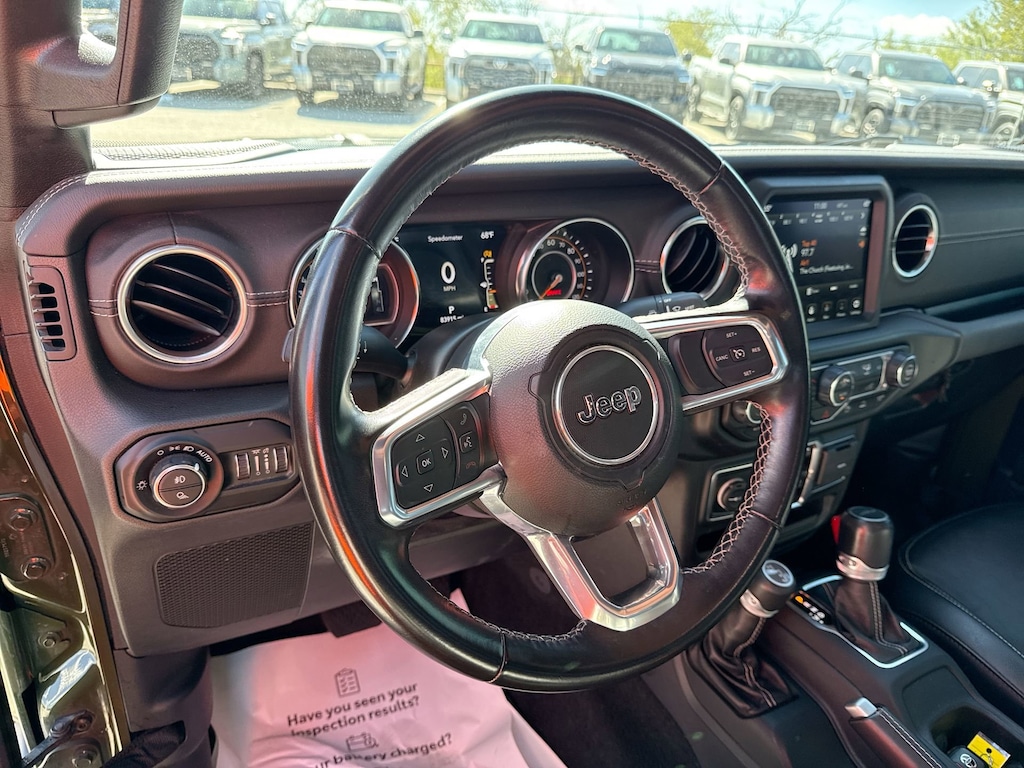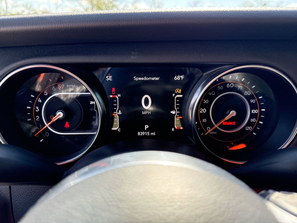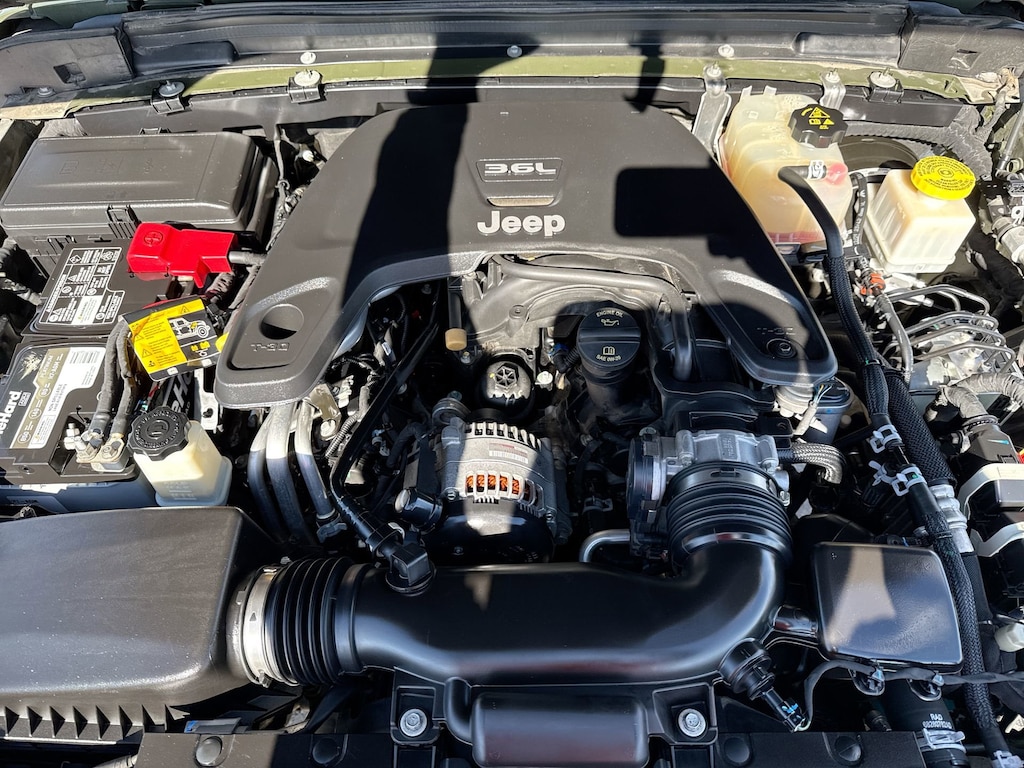 Features: 8.4" Radio & Premium Audio Group (1-Year SiriusXM Guardian Trial, 5-Year SiriusXM Traffic Service, 5-Year SiriusXM Travel Link Service, 8.4" Touchscreen Display, Alpine Premium Audio System, Auto-Dimming Rear-View Mirror, Emergency/Assistance Call, For Details, Visit DriveUconnect.com, GPS Navigation, HD Radio, Radio: Uconnect 4C Nav w/8.4" Display, SiriusXM Traffic Plus, and SiriusXM Travel Link), Popular Equipment Package (Black 3-Piece Hard Top, Freedom Panel Storage Bag, Full Length Floor Console Premium Armrest, Leather Trimmed Bucket Seats, Leather Wrapped Park Brake Handle, Leather Wrapped Shift Knob, Off-Road Info Pages, Premium Door Trim Panel, Premium Wrapped I/P Bezel, Rear Armrest w/Cupholder Seat, Rear Sliding Window, and Rear Window Defroster), Quick Order Package 24G, Safety Group (Blind Spot & Cross Path Detection and ParkSense Rear Park Assist System), Trailer Tow Package (240 Amp Alternator, Class IV Hitch Receiver, Heavy-Duty Engine Cooling, and Trailer Hitch Zoom), 110 mph Vehicle Max Speed Calibration, 3.73 Rear Axle Ratio, 4-Wheel Disc Brakes, 400W Inverter, 8 Speakers, ABS brakes, Air Conditioning, Alloy wheels, AM/FM radio: SiriusXM, Anti-Spin Differential Rear Axle, Apple CarPlay/Android Auto, Automatic temperature control, Brake assist, Compass, Delay-off headlights, Driver door bin, Driver vanity mirror, Dual front impact airbags, Dual front side impact airbags, Electronic Stability Control, Front anti-roll bar, Front Bucket Seats, Front Center Armrest w/Storage, Front dual zone A/C, Front fog lights, Front License Plate Bracket, Front reading lights, Fully automatic headlights, Garage door transmitter, Heated door mirrors, Illuminated entry, Integrated roll-over protection, Leather steering wheel, Low tire pressure warning, MOPAR All-Weather Floor Mats (DISC), MOPAR Hardtop Headliner, MOPAR Satin Black Grille, Normal Duty Plus Suspension, Occupant sensing airbag, Outside temperature display, Overland Cloth Bucket Seats, Panic alarm, ParkView Rear Back-Up Camera, Passenger door bin, Passenger vanity mirror, Power door mirrors, Power steering, Power windows, Radio data system, Radio: Uconnect 4 w/7" Display, Rear anti-roll bar, Rear reading lights, Remote keyless entry, Remote Proximity Keyless Entry, Remote Start System, Security system, Speed control, Split folding rear seat, Steering wheel mounted audio controls, Tachometer, Telescoping steering wheel, Tilt steering wheel, Traction control, Trip computer, Variably intermittent wipers, Voltmeter, and Wheels: 18" x 7.5" Granite Crystal AluminuM.