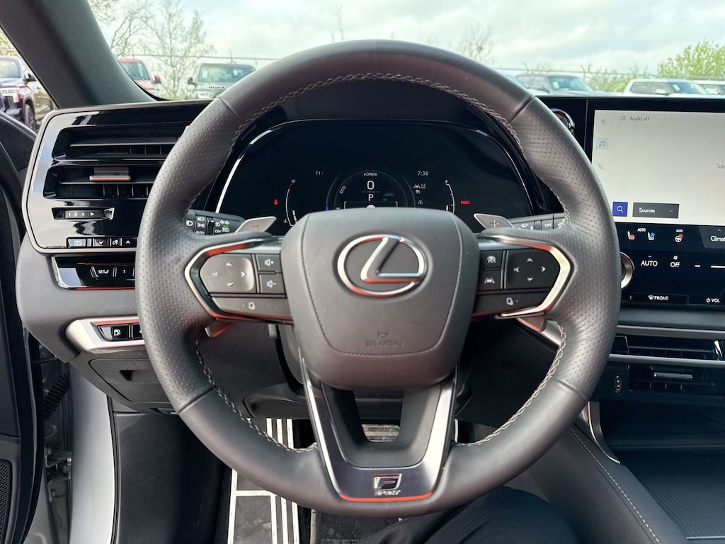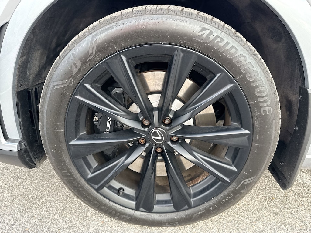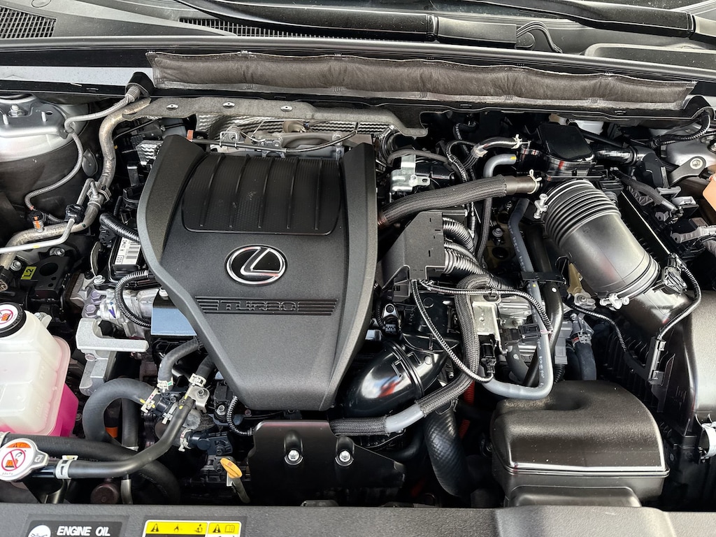 Features: 2.4L I4 PDI Hybrid Turbocharged DOHC 16V LEV3-SULEV30 274hp, AWD, Black w/Dark Graphite Aluminum w/Leather/Ultra Suede Seat Trim, 12 Speakers, 3.74 Axle Ratio, 4-Wheel Disc Brakes, ABS brakes, Adaptive suspension, Air Conditioning, Alloy wheels, AM/FM radio: SiriusXM, Anti-whiplash front head restraints, Auto High-beam Headlights, Auto tilt-away steering wheel, Auto-dimming door mirrors, Auto-dimming Rear-View mirror, Auto-leveling suspension, Automatic temperature control, Brake assist, Bumpers: body-color, Compass, Delay-off headlights, Driver door bin, Driver vanity mirror, Dual front impact airbags, Dual front side impact airbags, Electronic Stability Control, Emergency communication system: Safety Connect (10-year trial), Exterior Parking Camera Rear, Four wheel independent suspension, Front anti-roll bar, Front Bucket Seats, Front Center Armrest, Front dual zone A/C, Front fog lights, Front reading lights, Fully automatic headlights, Garage door transmitter: HomeLink, Heads-Up Display, Heated & Ventilated Front Seats, Heated door mirrors, Heated front seats, Illuminated entry, Leather Shift Knob, Leather steering wheel, Leather/Ultra Suede Seat Trim, Low tire pressure warning, Memory seat, Navigation System, Occupant sensing airbag, Outside temperature display, Overhead airbag, Overhead console, Panic alarm, Panorama Glass Moonroof, Passenger door bin, Passenger vanity mirror, Power door mirrors, Power driver seat, Power Liftgate, Power passenger seat, Power Rear Door w/Kick Sensor, Power steering, Power windows, Radio data system, Radio: Lexus Interface w/14" HD Touchscreen Display, Rain sensing wipers, Rear air conditioning, Rear anti-roll bar, Rear reading lights, Rear seat center armrest, Rear side impact airbag, Rear window defroster, Rear window wiper, Remote keyless entry, Security system, Speed control, Speed-sensing steering, Split folding rear seat, Spoiler, Sport steering wheel, Steering wheel memory, Steering wheel mounted audio controls, Tachometer, Telescoping steering wheel, Tilt steering wheel, Traction control, Trip computer, Turn signal indicator mirrors, Variably intermittent wipers, Ventilated front seats, Wheels: 21" 10-Spoke Alloy, and Wireless Apple CarPlay/Wireless Android Auto.