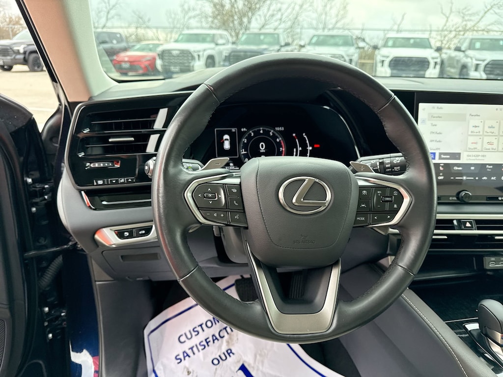 Features: Accessory Package (All-Weather Cargo Tray and All-Weather Floor Liner), Technology Package, Macadamia w/Black Cascade Trim w/NuLuxe Seat Trim, 12 Speakers, 19" Wheels, 3.33 Axle Ratio, 4-Wheel Disc Brakes, ABS brakes, Air Conditioning, Alloy wheels, AM/FM radio: SiriusXM, Anti-whiplash front head restraints, Auto High-beam Headlights, Auto-dimming door mirrors, Auto-dimming Rear-View mirror, Automatic temperature control, Brake assist, Bumpers: body-color, Compass, Delay-off headlights, Driver door bin, Driver vanity mirror, Dual front impact airbags, Dual front side impact airbags, Electronic Stability Control, Emergency communication system: Safety Connect (10-year trial), Exterior Parking Camera Rear, Four wheel independent suspension, Front anti-roll bar, Front Bucket Seats, Front Center Armrest, Front dual zone A/C, Front fog lights, Front reading lights, Fully automatic headlights, Garage door transmitter: HomeLink, Genuine wood console insert, Heated door mirrors, Heated Front Bucket Seats, Heated front seats, Illuminated entry, Leather Shift Knob, Leather steering wheel, Low tire pressure warning, Navigation System, NuLuxe Seat Trim, Occupant sensing airbag, Outside temperature display, Overhead airbag, Overhead console, Panic alarm, Passenger door bin, Passenger vanity mirror, Power door mirrors, Power driver seat, Power Liftgate, Power passenger seat, Power steering, Power windows, Radio data system, Radio: Lexus Interface w/9.8" HD Touchscreen Display, Rain sensing wipers, Rear air conditioning, Rear anti-roll bar, Rear Parking Sensors, Rear reading lights, Rear seat center armrest, Rear side impact airbag, Rear window defroster, Rear window wiper, Remote keyless entry, Security system, Speed control, Speed-sensing steering, Split folding rear seat, Spoiler, Steering wheel mounted audio controls, Tachometer, Telescoping steering wheel, Tilt steering wheel, Traction control, Trip computer, Turn signal indicator mirrors, Variably intermittent wipers, and Wireless Apple CarPlay/Wireless Android Auto.