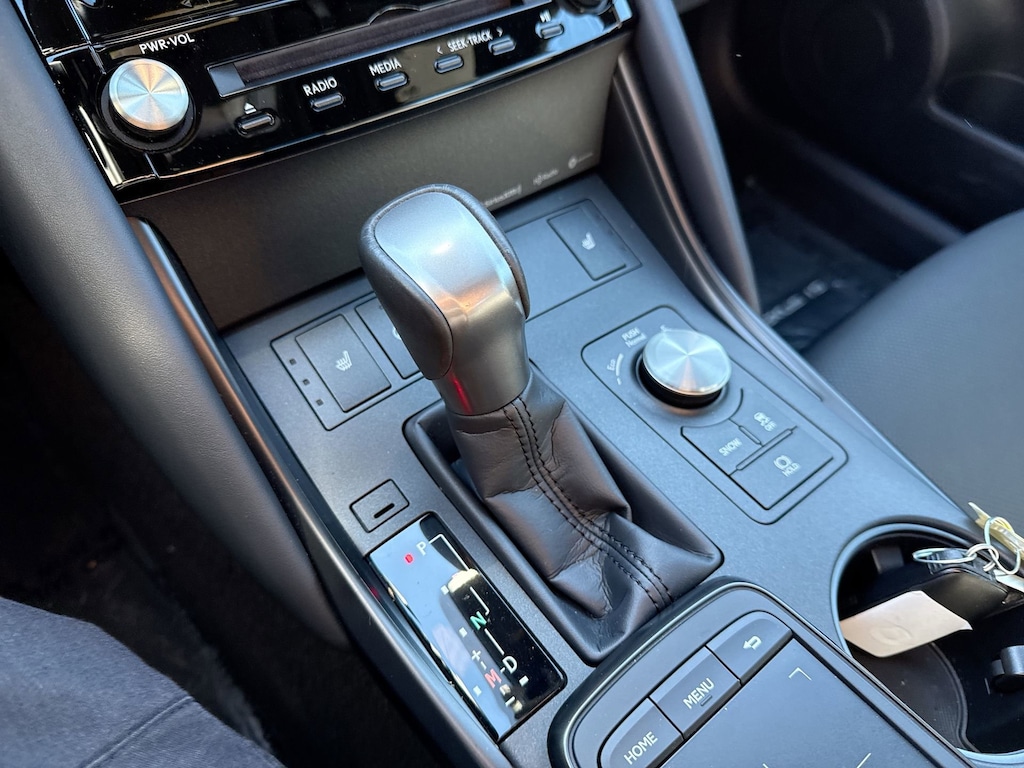 Features: F SPORT Design Package, Black w/Satin Chrome Trim, ABS brakes, Active Cruise Control, Alloy wheels, Compass, Electronic Stability Control, Front dual zone A/C, Heated door mirrors, Heated front seats, Illuminated entry, Low tire pressure warning, Remote keyless entry, Traction control, 10 Speakers, 4-Wheel Disc Brakes, Air Conditioning, AM/FM radio: SiriusXM, Apple CarPlay/Android Auto, Auto High-beam Headlights, Auto-dimming door mirrors, Automatic temperature control, Brake assist, Bumpers: body-color, CD player, Delay-off headlights, Driver door bin, Driver vanity mirror, Dual front impact airbags, Dual front side impact airbags, Emergency communication system: Safety Connect (3-year trial), Exterior Parking Camera Rear, Four wheel independent suspension, Front anti-roll bar, Front Bucket Seats, Front Center Armrest, Front fog lights, Front reading lights, Fully automatic headlights, Heated F SPORT Seats, Heated steering wheel, Knee airbag, Leather Shift Knob, Leather steering wheel, Memory seat, Moonroof, NuLuxe Seat Trim, Occupant sensing airbag, Outside temperature display, Overhead airbag, Overhead console, Panic alarm, Passenger door bin, Passenger vanity mirror, Power door mirrors, Power driver seat, Power passenger seat, Power steering, Power windows, Radio data system, Radio: Lexus Multimedia System with 8.0" Touchscreen Display, Rear anti-roll bar, Rear reading lights, Rear side impact airbag, Rear window defroster, Security system, Speed control, Speed-sensing steering, Speed-Sensitive Wipers, Split folding rear seat, Spoiler, Steering wheel memory, Steering wheel mounted audio controls, Tachometer, Telescoping steering wheel, Tilt steering wheel, Trip computer, Turn signal indicator mirrors, Variably intermittent wipers, and Wheels: 19" Split-5-Spoke Alloy with Dark Metallic Finish.