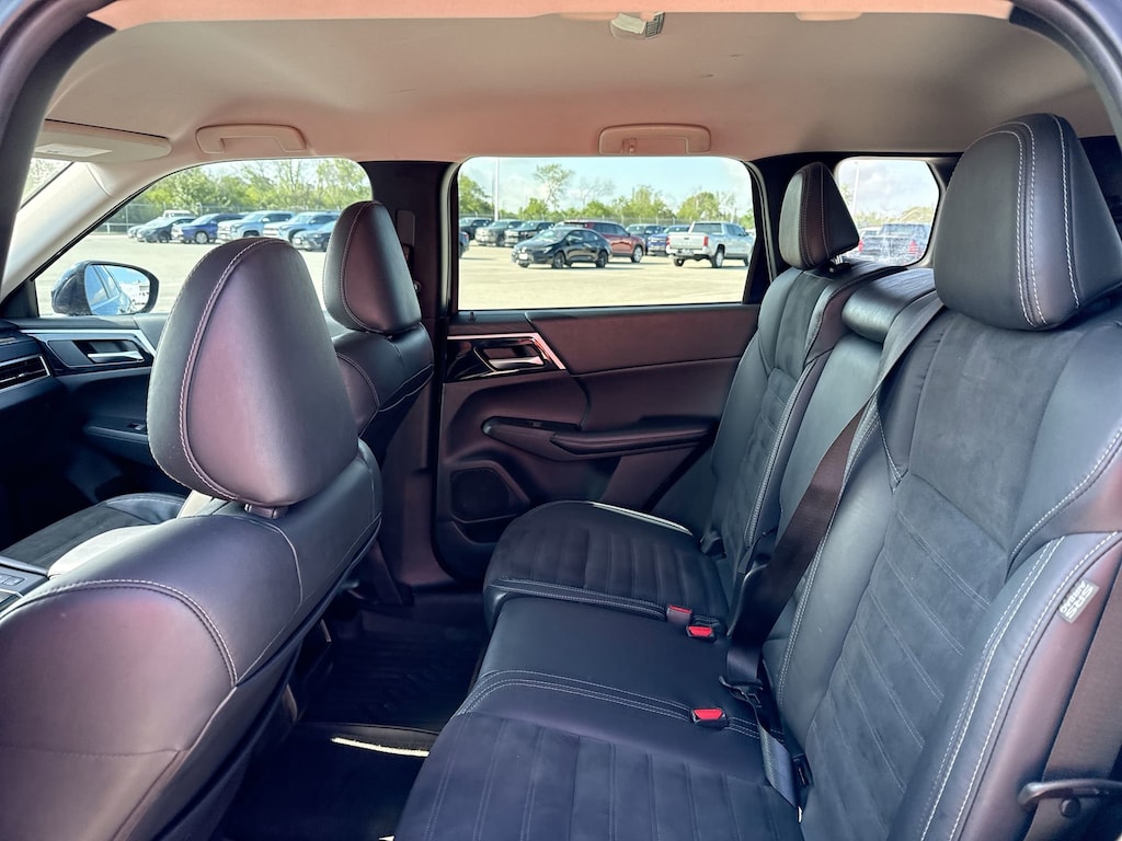 Cavender Certified Pre-Owned Program Built-in Benefits: Limited Powertrain Warranty for your peace of mind. Coverage includes components for engine, transmission and axles (for specific component coverage, please speak with a dealer representative). 24/7 Roadside Assistance â" No out-of-pocket costs for customers towed to our dealership (if located within 30 miles), lockout assistance, jump start, fuel and fluid delivery, flat tire changes, available 365 days/year, up to $100 maximum coverage per roadside incident. A Vehicle History Report is included with every Cavender Certified Pre-Owned vehicle to offer you Confidence knowing that the vehicle you are purchasing is right for you and the road ahead. (Limitation and exclusions apply. Please refer to your Limited Warranty Registration for full coverage information.) The Cavender Auto Family, proudly serving our communities since 1939, and we look forward to serving you! - Equipment: SE Tech Package (12.3" Full Digital Driver Display, Auto-Dimming Rear-View Mirror, Power Panoramic Sunroof, and Power Windows w/All Door Auto Up/Down), ABS brakes, Alloy wheels, Electronic Stability Control, Front dual zone A/C, Heated door mirrors, Heated Front Bucket Seats, Heated front seats, Illuminated entry, Low tire pressure warning, Power Liftgate, Remote keyless entry, Traction control, 3rd row seats: split-bench, 4-Wheel Disc Brakes, Air Conditioning, AM/FM radio: SiriusXM, Android Auto & Apple CarPlay, Auto High-beam Headlights, Automatic temperature control, Axle Ratio: 5.694, Brake assist, Bumpers: body-color, Driver door bin, Driver vanity mirror, Dual front impact airbags, Dual front side impact airbags, Emergency communication system: Mitsubishi Connect w/ 24-month trial, Four wheel independent suspension, Front anti-roll bar, Front Bucket Seats, Front Center Armrest w/Storage, Front fog lights, Front reading lights, Fully automatic headlights, Knee airbag, Leather Shift Knob, Leather steering wheel, Navigation system: Powered by TOMTOM, Occupant sensing airbag, Outside temperature display, Overhead airbag, Overhead console, Panic alarm, Passenger door bin, Passenger vanity mirror, Power door mirrors, Power driver seat, Power steering, Power windows, Radio data system, Radio: AM/FM 9.0" Navigation w/Smartphone Link, Rain sensing wipers, Rear anti-roll bar, Rear seat center armrest, Rear side impact airbag, Rear window defroster, Rear window wiper, Reclining 3rd row seat, Security system, Speed control, Speed-Sensitive Wipers, Split folding rear seat, Spoiler, Steering wheel mounted audio controls, Synthetic Leather Seat Trim, Tachometer, Telescoping steering wheel, Tilt steering wheel, Trip computer, Turn signal indicator mirrors, Variably intermittent wipers, and Wheels: 20" x 8J Two-Tone Alloy.