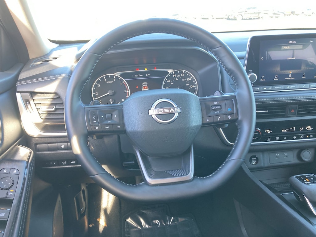 Cavender Certified Pre-Owned Program Built-in Benefits: Limited Powertrain Warranty for your peace of mind. Coverage includes components for engine, transmission and axles (for specific component coverage, please speak with a dealer representative). 24/7 Roadside Assistance â" No out-of-pocket costs for customers towed to our dealership (if located within 30 miles), lockout assistance, jump start, fuel and fluid delivery, flat tire changes, available 365 days/year, up to $100 maximum coverage per roadside incident. A Vehicle History Report is included with every Cavender Certified Pre-Owned vehicle to offer you Confidence knowing that the vehicle you are purchasing is right for you and the road ahead. (Limitation and exclusions apply. Please refer to your Limited Warranty Registration for full coverage information.) The Cavender Auto Family, proudly serving our communities since 1939, and we look forward to serving you! - Equipment: 4-Wheel Disc Brakes, 6 Speakers, ABS brakes, Air Conditioning, Alloy wheels, AM/FM radio: SiriusXM, Android Auto and Apple CarPlay, Auto High-beam Headlights, Automatic temperature control, Brake assist, Bumpers: body-color, Cloth Seat Trim with Patterned Inserts, Delay-off headlights, Driver door bin, Driver vanity mirror, Dual front impact airbags, Dual front side impact airbags, Electronic Stability Control, Emergency communication system: NissanConnect Services, First Aid Kit, Floor Mats with 1-Piece Cargo Area Protector, Four wheel independent suspension, Front anti-roll bar, Front Bucket Seats, Front Bucket Seats with 8-Way Power Driver Seat, Front Center Armrest, Front dual zone A/C, Front reading lights, Fully automatic headlights, Heated door mirrors, Illuminated entry, Knee airbag, Low tire pressure warning, Occupant sensing airbag, Outside temperature display, Overhead airbag, Overhead console, Panic alarm, Passenger door bin, Passenger vanity mirror, Power door mirrors, Power driver seat, Power Liftgate, Power steering, Power windows, Radio data system, Radio: NissanConnect with 6 Speakers, Rear anti-roll bar, Rear seat center armrest, Rear side impact airbag, Rear window defroster, Rear window wiper, Remote keyless entry, Speed control, Speed-sensing steering, Speed-Sensitive Wipers, Split folding rear seat, Spoiler, Steering wheel mounted audio controls, Tachometer, Telescoping steering wheel, Tilt steering wheel, Traction control, Trip computer, Variably intermittent wipers, and Wheels: 18" Dark Painted Machine Finished Alloy.