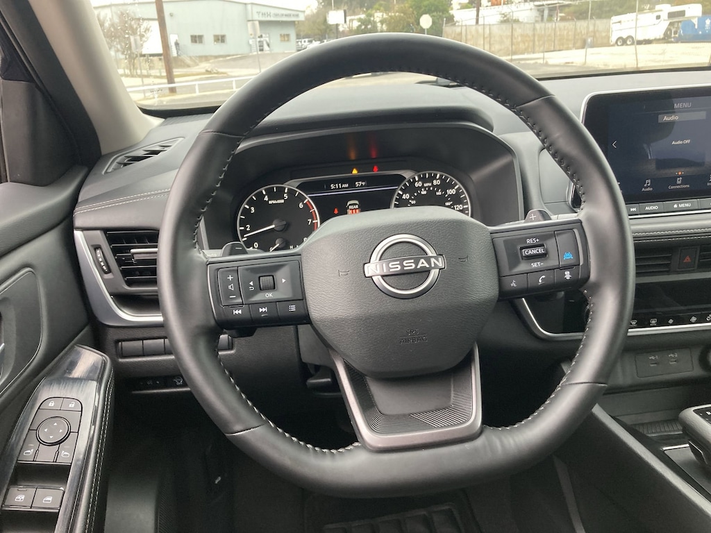 Cavender Certified Pre-Owned Program Built-in Benefits: Limited Powertrain Warranty for your peace of mind. Coverage includes components for engine, transmission and axles (for specific component coverage, please speak with a dealer representative). 24/7 Roadside Assistance â" No out-of-pocket costs for customers towed to our dealership (if located within 30 miles), lockout assistance, jump start, fuel and fluid delivery, flat tire changes, available 365 days/year, up to $100 maximum coverage per roadside incident. A Vehicle History Report is included with every Cavender Certified Pre-Owned vehicle to offer you Confidence knowing that the vehicle you are purchasing is right for you and the road ahead. (Limitation and exclusions apply. Please refer to your Limited Warranty Registration for full coverage information.) The Cavender Auto Family, proudly serving our communities since 1939, and we look forward to serving you! - Equipment: 4-Wheel Disc Brakes, 6 Speakers, ABS brakes, Air Conditioning, Alloy wheels, AM/FM radio: SiriusXM, Android Auto and Apple CarPlay, Auto High-beam Headlights, Automatic temperature control, Brake assist, Bumpers: body-color, Cloth Seat Trim with Patterned Inserts, Delay-off headlights, Driver door bin, Driver vanity mirror, Dual front impact airbags, Dual front side impact airbags, Electronic Stability Control, Emergency communication system: NissanConnect Services, First Aid Kit, Floor Mats with 1-Piece Cargo Area Protector, Four wheel independent suspension, Front anti-roll bar, Front Bucket Seats, Front Bucket Seats with 8-Way Power Driver Seat, Front Center Armrest, Front dual zone A/C, Front reading lights, Fully automatic headlights, Heated door mirrors, Illuminated entry, Knee airbag, Low tire pressure warning, Occupant sensing airbag, Outside temperature display, Overhead airbag, Overhead console, Panic alarm, Passenger door bin, Passenger vanity mirror, Power door mirrors, Power driver seat, Power Liftgate, Power steering, Power windows, Radio data system, Radio: NissanConnect with 6 Speakers, Rear anti-roll bar, Rear seat center armrest, Rear side impact airbag, Rear window defroster, Rear window wiper, Remote keyless entry, Speed control, Speed-sensing steering, Speed-Sensitive Wipers, Split folding rear seat, Spoiler, Steering wheel mounted audio controls, Tachometer, Telescoping steering wheel, Tilt steering wheel, Traction control, Trip computer, Variably intermittent wipers, and Wheels: 18" Dark Painted Machine Finished Alloy.