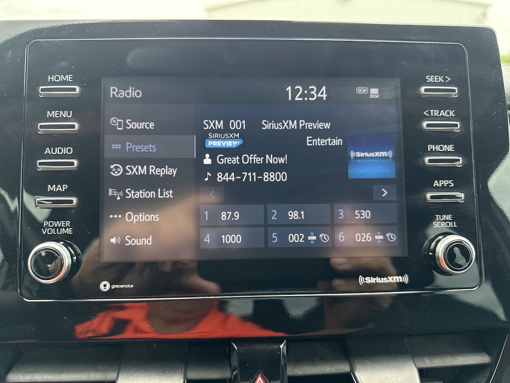 Features: Blackout Package (TMS), Toyota Gold Certified Certified, Black w/Sport SofTex Seat Trim w/Fabric Inserts, ABS brakes, Active Cruise Control, Alloy wheels, Electronic Stability Control, Front dual zone A/C, Heated door mirrors, Illuminated entry, Low tire pressure warning, Remote keyless entry, Traction control, 4-Wheel Disc Brakes, 6 Speakers, 8.0J x 18" Alloy Wheels, Air Conditioning, AM/FM radio: SiriusXM, Apple CarPlay/Android Auto, Auto High-beam Headlights, Automatic temperature control, Brake assist, Bumpers: body-color, Delay-off headlights, Driver door bin, Driver vanity mirror, Dual front impact airbags, Dual front side impact airbags, Emergency communication system: Safety Connect (1-year trial), Exterior Parking Camera Rear, Four wheel independent suspension, Front anti-roll bar, Front Bucket Seats, Front Center Armrest, Front reading lights, Fully automatic headlights, Knee airbag, Leather steering wheel, Occupant sensing airbag, Outside temperature display, Overhead airbag, Overhead console, Panic alarm, Passenger door bin, Passenger vanity mirror, Power door mirrors, Power driver seat, Power steering, Power windows, Radio data system, Radio: Audio, Rear anti-roll bar, Rear seat center armrest, Rear side impact airbag, Rear window defroster, Security system, Speed control, Speed-sensing steering, Split folding rear seat, Spoiler, Sport SofTex Seat Trim w/Fabric Inserts, Steering wheel mounted audio controls, Tachometer, Telescoping steering wheel, Tilt steering wheel, Trip computer, Turn signal indicator mirrors, and Variably intermittent wipers.