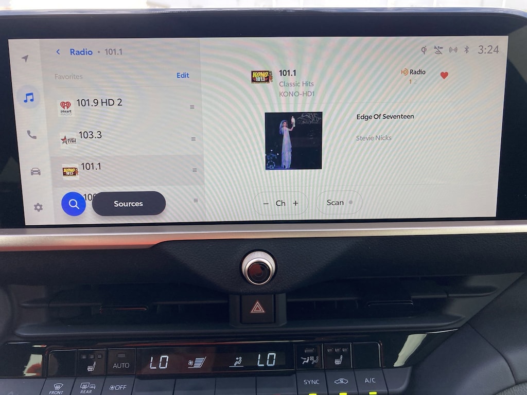Features: ABS brakes, Active Cruise Control, Alloy wheels, Compass, Electronic Stability Control, Front dual zone A/C, Heated door mirrors, Heated front seats, Illuminated entry, Low tire pressure warning, Navigation System, Remote keyless entry, Traction control, 4-Wheel Disc Brakes, 6 Speakers, 8-way Adjustable Heated Front Seats, Air Conditioning, AM/FM radio: SiriusXM, Apple CarPlay/Android Auto, Auto High-beam Headlights, Auto-dimming Rear-View mirror, Automatic temperature control, Brake assist, Bumpers: body-color, Delay-off headlights, Driver door bin, Driver vanity mirror, Dual front impact airbags, Dual front side impact airbags, Emergency communication system: Safety Connect (1-year trial), Exterior Parking Camera Rear, Four wheel independent suspension, Front anti-roll bar, Front Bucket Seats, Front Center Armrest, Front reading lights, Fully automatic headlights, Garage door transmitter: HomeLink, Knee airbag, Leather Shift Knob, Leather steering wheel, Navigation system: Dynamic Navigation (3-year trial), Occupant sensing airbag, Outside temperature display, Overhead airbag, Overhead console, Panic alarm, Passenger door bin, Passenger vanity mirror, Power door mirrors, Power driver seat, Power passenger seat, Power steering, Power windows, Radio data system, Radio: Premium Audio w/Navigation, Rear anti-roll bar, Rear reading lights, Rear seat center armrest, Rear side impact airbag, Rear window defroster, Security system, SofTex Seat Trim, Speed control, Speed-sensing steering, Split folding rear seat, Steering wheel mounted audio controls, Tachometer, Telescoping steering wheel, Tilt steering wheel, Trip computer, Turn signal indicator mirrors, Variably intermittent wipers, and Wheels: 19" x 7" Multi-Spoke Machined 2-Tone Alloy.