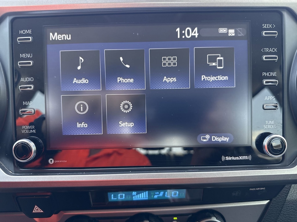 Features: Black Out Package (TMS), Toyota Gold Certified Certified, ABS brakes, Active Cruise Control, Alloy wheels, Electronic Stability Control, Front dual zone A/C, Heated door mirrors, Illuminated entry, Low tire pressure warning, Remote keyless entry, Traction control, 6 Speakers, Air Conditioning, AM/FM radio: SiriusXM, Anti-whiplash front head restraints, Apple CarPlay/Android Auto, Auto High-beam Headlights, Auto-dimming Rear-View mirror, Automatic temperature control, Axle Ratio: 3.91, Black Headlamp Bezel, Brake assist, Bumpers: body-color, Daytime Running Lamps, Driver door bin, Dual front impact airbags, Dual front side impact airbags, Emergency communication system: Safety Connect (1-year trial), Exterior Parking Camera Rear, Fabric Seat Trim, Front anti-roll bar, Front Bucket Seats, Front Center Armrest, Front fog lights, Front reading lights, Front Seats, Front wheel independent suspension, Knee airbag, Occupant sensing airbag, Outside temperature display, Overhead airbag, Overhead console, Panic alarm, Passenger door bin, Power door mirrors, Power driver seat, Power steering, Power windows, Radio: Audio, Rear step bumper, Speed control, Speed-sensing steering, Split folding rear seat, Steering wheel mounted audio controls, Tachometer, Telescoping steering wheel, Tilt steering wheel, Trip computer, Variably intermittent wipers, and Wheels: 16" Black Alloy.