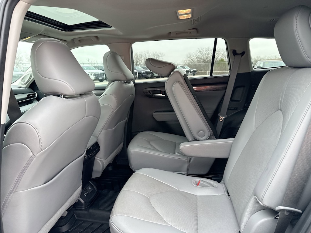 Features: Panoramic View Camera (Panoramic View Monitor), Toyota Gold Certified Certified, ABS brakes, Active Cruise Control, Alloy wheels, Electronic Stability Control, Front dual zone A/C, Heated door mirrors, Heated front seats, Heated/Ventilated Front Bucket Seats, Illuminated entry, Leather Seat Trim, Low tire pressure warning, Navigation System, Power Liftgate, Power moonroof, Remote keyless entry, Traction control, 11 Speakers, 3.329 Axle Ratio, 3rd row seats: split-bench, 4-Wheel Disc Brakes, Air Conditioning, AM/FM radio: SiriusXM, Apple CarPlay/Android Auto, Auto High-beam Headlights, Auto-dimming Rear-View mirror, Automatic temperature control, Brake assist, Bumpers: body-color, Chrome wheels, Delay-off headlights, Driver door bin, Driver vanity mirror, Dual front impact airbags, Dual front side impact airbags, Emergency communication system: Safety Connect (up to 10-year trial subscription), Exterior Parking Camera Rear, Four wheel independent suspension, Front anti-roll bar, Front Bucket Seats, Front Center Armrest, Front fog lights, Front reading lights, Fully automatic headlights, Garage door transmitter: HomeLink, Heated steering wheel, Knee airbag, Leather Shift Knob, Leather steering wheel, Memory seat, Navigation system: Drive Connect Cloud Navigation (1-year trial subscription), Occupant sensing airbag, Outside temperature display, Overhead airbag, Overhead console, Panic alarm, Passenger door bin, Passenger vanity mirror, Power door mirrors, Power driver seat, Power passenger seat, Power steering, Power windows, Radio: 12.3" Toyota Audio Multimedia w/JBL Premium, Rear air conditioning, Rear anti-roll bar, Rear reading lights, Rear window defroster, Rear window wiper, Reclining 3rd row seat, Security system, Speed control, Speed-sensing steering, Split folding rear seat, Spoiler, Steering wheel mounted audio controls, Tachometer, Telescoping steering wheel, Tilt steering wheel, Trip computer, Turn signal indicator mirrors, Variably intermittent wipers, Ventilated front seats, and Wheels: 20" Chrome Finished Alloy.