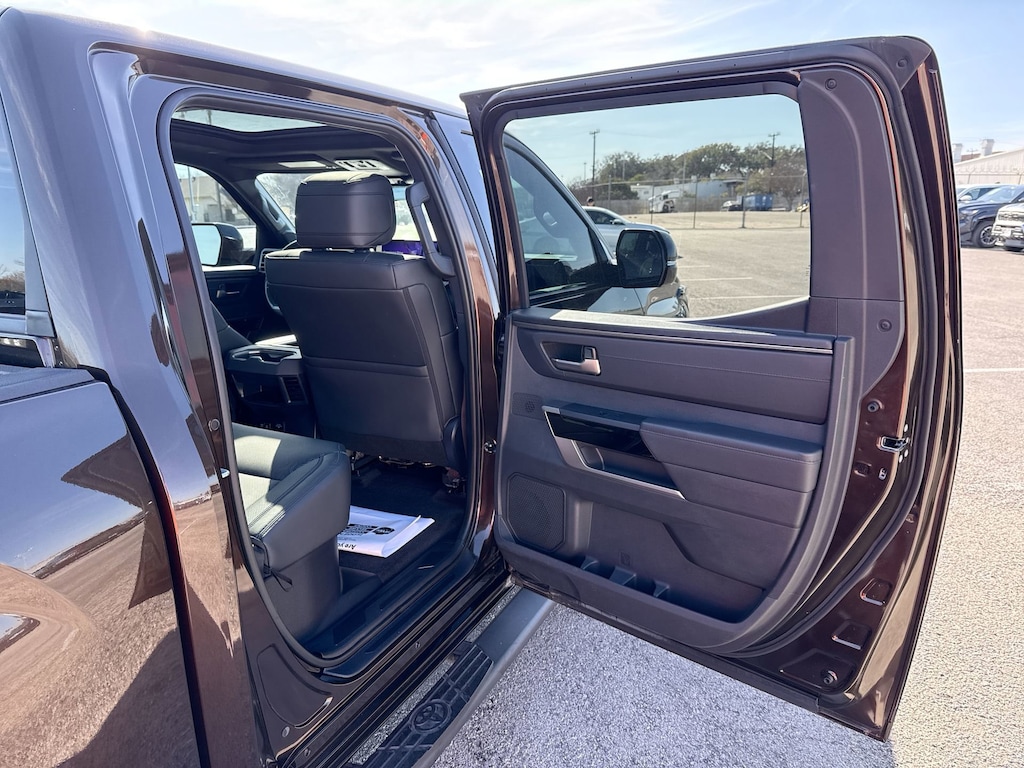 Cavender Certified Pre-Owned Program Built-in Benefits: Limited Powertrain Warranty for your peace of mind. Coverage includes components for engine, transmission and axles (for specific component coverage, please speak with a dealer representative). 24/7 Roadside Assistance â" No out-of-pocket costs for customers towed to our dealership (if located within 30 miles), lockout assistance, jump start, fuel and fluid delivery, flat tire changes, available 365 days/year, up to $100 maximum coverage per roadside incident. A Vehicle History Report is included with every Cavender Certified Pre-Owned vehicle to offer you Confidence knowing that the vehicle you are purchasing is right for you and the road ahead. (Limitation and exclusions apply. Please refer to your Limited Warranty Registration for full coverage information.) The Cavender Auto Family, proudly serving our communities since 1939, and we look forward to serving you! - Equipment: Nightshade Package (Wheels: 20" x 8J Matte Black TRD Sport Style), Panoramic View Monitor Package (Panoramic View Back Monitor), Power Package (120V Deck & Cabin Power Supply and Wireless Charger), Premium Package (High Grade Full LED Headlamp), Towing Package, 4WD, Black w/SofTex Seat Trim, ABS brakes, Active Cruise Control, Alloy wheels, Electronic Stability Control, Front dual zone A/C, Heated door mirrors, Heated front seats, Illuminated entry, Low tire pressure warning, Navigation System, Remote keyless entry, Traction control, 20" Alloy Wheels, 3.31 Axle Ratio, 4-Wheel Disc Brakes, 8-Way Pwr Adjustable Heated/Ventilated Front Seats, 9 Speakers, Air Conditioning, AM/FM radio: SiriusXM, Apple CarPlay/Android Auto, Auto High-beam Headlights, Auto-dimming door mirrors, Auto-dimming Rear-View mirror, Automatic temperature control, Brake assist, Bumpers: body-color, Delay-off headlights, Driver door bin, Driver vanity mirror, Dual front impact airbags, Dual front side impact airbags, Emergency communication system: Safety Connect (10-year trial), Exterior Parking Camera Rear, Front anti-roll bar, Front Bucket Seats, Front Center Armrest, Front fog lights, Front reading lights, Front wheel independent suspension, Fully automatic headlights, Garage door transmitter: HomeLink, JBL Premium Audio, Knee airbag, Leather Shift Knob, Leather steering wheel, Memory seat, Occupant sensing airbag, Outside temperature display, Overhead airbag, Overhead console, Panic alarm, Passenger door bin, Passenger vanity mirror, Power door mirrors, Power driver seat, Power passenger seat, Power steering, Power Tilt/Slide Panoramic Sunroof, Power windows, Radio data system, Radio: Audio Multimedia System, Rear reading lights, Rear seat center armrest, Rear step bumper, Rear window defroster, Safety Connect, Security system, SofTex Seat Trim, Speed control, Speed-sensing steering, Split folding rear seat, Steering wheel mounted audio controls, Tachometer, Telescoping steering wheel, Tilt steering wheel, Trip computer, Turn signal indicator mirrors, Variably intermittent wipers, Ventilated front seats, and Voltmeter.