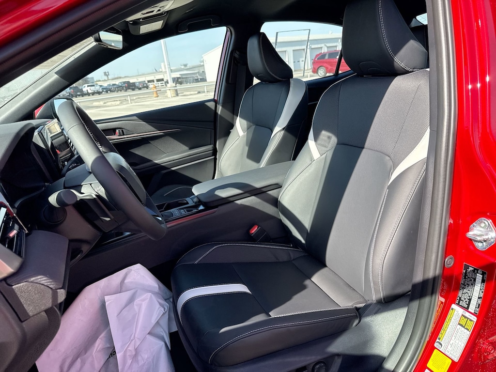 Features: Convenience Package (Auto-Dimming Rearview Mirror with HomeLink and Smart Key System on Front Doors), Black w/SofTex and Fabric Seat Trim, ABS brakes, Active Cruise Control, Alloy wheels, Electronic Stability Control, Front dual zone A/C, Heated door mirrors, Illuminated entry, Low tire pressure warning, Remote keyless entry, Traction control, 4-Wheel Disc Brakes, 6 Speakers, Air Conditioning, AM/FM radio: SiriusXM, Apple CarPlay/Android Auto, Auto High-beam Headlights, Automatic temperature control, Brake assist, Bumpers: body-color, Delay-off headlights, Driver door bin, Driver vanity mirror, Dual front impact airbags, Dual front side impact airbags, Emergency communication system: Safety Connect (5-year trial), Exterior Parking Camera Rear, Four wheel independent suspension, Front anti-roll bar, Front Bucket Seats, Front Center Armrest, Front reading lights, Front Seats, Fully automatic headlights, Knee airbag, Leather Shift Knob, Leather steering wheel, Occupant sensing airbag, Outside temperature display, Overhead airbag, Overhead console, Panic alarm, Passenger door bin, Passenger vanity mirror, Power door mirrors, Power driver seat, Power steering, Power windows, Radio data system, Radio: 8" Toyota Audio Multimedia, Rear anti-roll bar, Rear reading lights, Rear seat center armrest, Rear window defroster, Security system, SofTex and Fabric Seat Trim, Speed control, Speed-sensing steering, Split folding rear seat, Spoiler, Steering wheel mounted audio controls, Telescoping steering wheel, Tilt steering wheel, Trip computer, Turn signal indicator mirrors, Variably intermittent wipers, and Wheels: 18" Multi-Spoke Black-Finished Alloy.