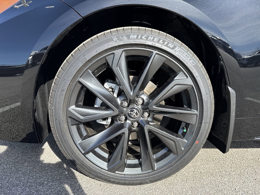 Features: 4-Wheel Disc Brakes, 6 Speakers, ABS brakes, Air Conditioning, Alloy wheels, AM/FM radio: SiriusXM, Apple CarPlay/Android Auto, Auto High-beam Headlights, Automatic temperature control, Black Badge Overlays, Brake assist, Bumpers: body-color, Delay-off headlights, Driver door bin, Driver vanity mirror, Dual front impact airbags, Dual front side impact airbags, Electronic Stability Control, Emergency communication system: Safety Connect (up to 10-year trial subscription), Exterior Parking Camera Rear, Fabric Seat Trim, Four wheel independent suspension, Front anti-roll bar, Front Bucket Seats, Front Center Armrest, Front reading lights, Front Sport Seats, Fully automatic headlights, Heated door mirrors, Illuminated entry, Knee airbag, Leather steering wheel, Low tire pressure warning, Mudguards, Occupant sensing airbag, Outside temperature display, Overhead airbag, Panic alarm, Passenger door bin, Passenger vanity mirror, Power door mirrors, Power steering, Power windows, Radio data system, Radio: 8" Toyota Audio Multimedia, Rear anti-roll bar, Rear seat center armrest, Rear side impact airbag, Rear window defroster, Remote keyless entry, Speed control, Split folding rear seat, Spoiler, Steering wheel mounted audio controls, Tachometer, Telescoping steering wheel, Tilt steering wheel, Traction control, Trip computer, Turn signal indicator mirrors, Variably intermittent wipers, and Wheels: 18" Alloy with Graphite-Colored Finish.