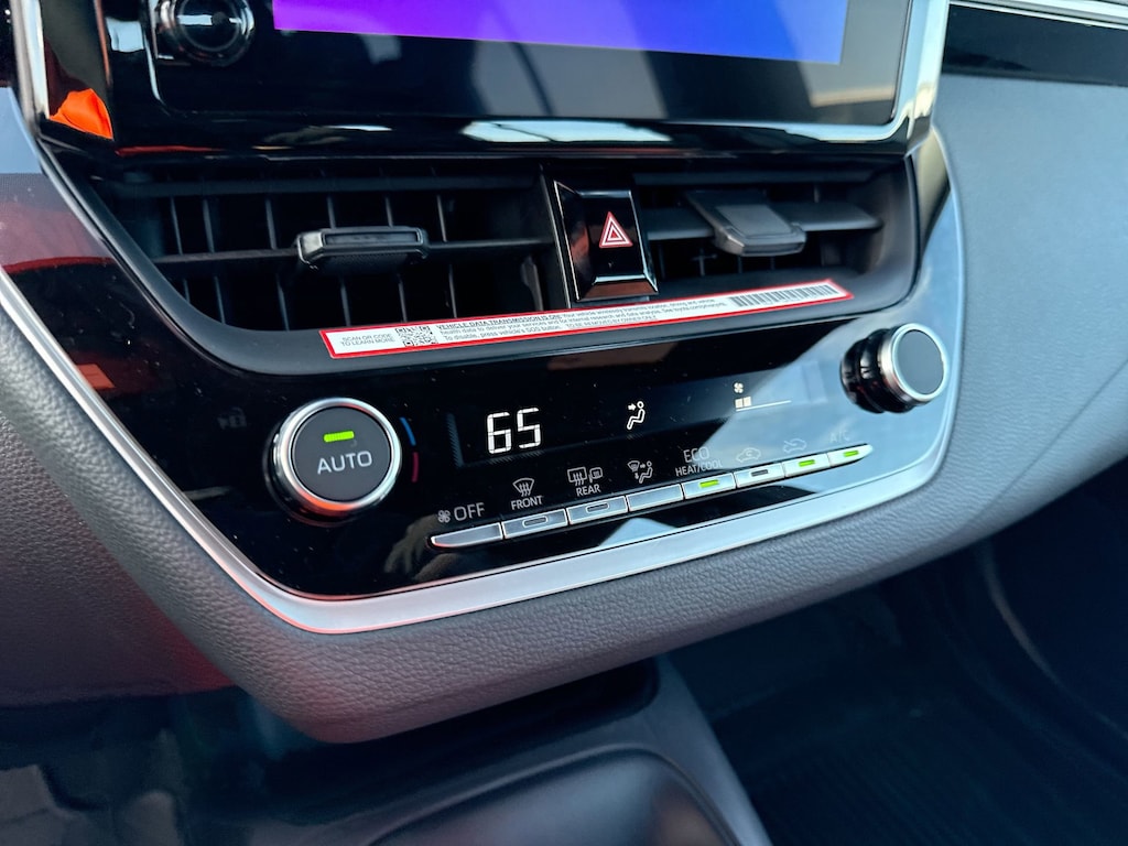 Features: Toyota Gold Certified Certified, 4-Wheel Disc Brakes, 6 Speakers, ABS brakes, Air Conditioning, Alloy wheels, AM/FM radio: SiriusXM, Apple CarPlay/Android Auto, Auto High-beam Headlights, Automatic temperature control, Brake assist, Bumpers: body-color, Delay-off headlights, Driver door bin, Driver vanity mirror, Dual front impact airbags, Dual front side impact airbags, Electronic Stability Control, Emergency communication system: Safety Connect (up to 10-year trial subscription), Exterior Parking Camera Rear, Fabric Seat Trim, Four wheel independent suspension, Front anti-roll bar, Front Bucket Seats, Front Center Armrest, Front reading lights, Front Sport Seats, Fully automatic headlights, Heated door mirrors, Illuminated entry, Knee airbag, Leather steering wheel, Low tire pressure warning, Occupant sensing airbag, Outside temperature display, Overhead airbag, Panic alarm, Passenger door bin, Passenger vanity mirror, Power door mirrors, Power steering, Power windows, Radio data system, Radio: 8" Toyota Audio Multimedia, Rear anti-roll bar, Rear seat center armrest, Rear side impact airbag, Rear window defroster, Remote keyless entry, Speed control, Split folding rear seat, Spoiler, Steering wheel mounted audio controls, Tachometer, Telescoping steering wheel, Tilt steering wheel, Traction control, Trip computer, Turn signal indicator mirrors, and Variably intermittent wipers.