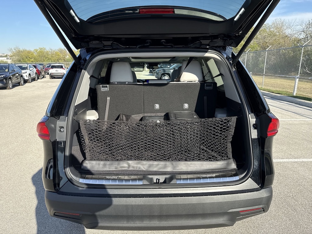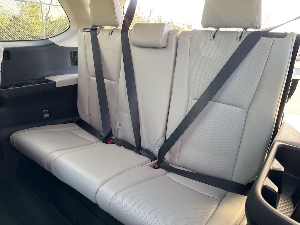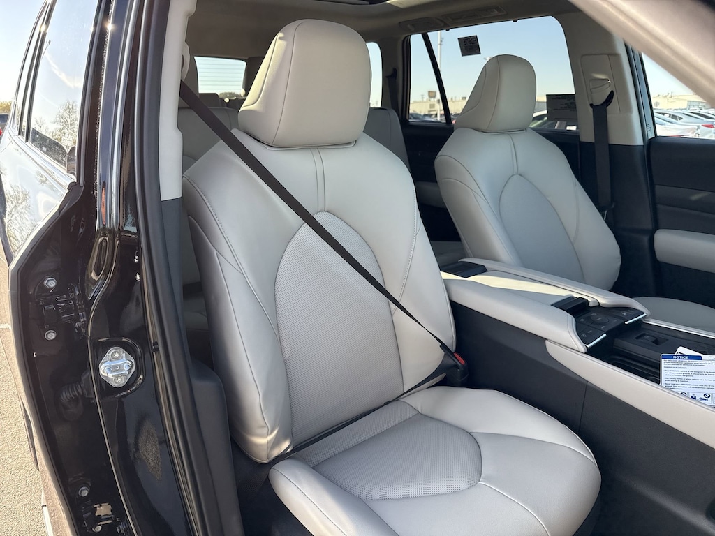 Features: ABS brakes, Active Cruise Control, Alloy wheels, Electronic Stability Control, Front dual zone A/C, Heated door mirrors, Heated Front Seats, Heated front seats, Illuminated entry, Low tire pressure warning, Navigation System, Power Liftgate, Remote keyless entry, Traction control, 3rd row seats: split-bench, 4-Wheel Disc Brakes, 6 Speakers, Air Conditioning, AM/FM radio: SiriusXM, Apple CarPlay/Android Auto, Auto High-beam Headlights, Auto-dimming Rear-View mirror, Automatic temperature control, Brake assist, Bumpers: body-color, Delay-off headlights, Driver door bin, Driver vanity mirror, Dual front impact airbags, Dual front side impact airbags, Emergency communication system: Safety Connect (up to 10-year trial subscription), Exterior Parking Camera Rear, Four wheel independent suspension, Front anti-roll bar, Front Bucket Seats, Front Center Armrest, Front reading lights, Fully automatic headlights, Garage door transmitter: HomeLink, Knee airbag, Leather Shift Knob, Leather steering wheel, Navigation system: Drive Connect Cloud Navigation (1-year trial subscription), Occupant sensing airbag, Outside temperature display, Overhead airbag, Overhead console, Panic alarm, Passenger door bin, Passenger vanity mirror, Power door mirrors, Power driver seat, Power passenger seat, Power steering, Power Tilt/Slide Panoramic Rood with Power Sunshade, Power windows, Radio: 12.3" Toyota Multimedia Audio, Rear air conditioning, Rear anti-roll bar, Rear reading lights, Rear window defroster, Rear window wiper, Reclining 3rd row seat, Security system, SofTex Seat Trim, Speed control, Speed-sensing steering, Split folding rear seat, Spoiler, Steering wheel mounted audio controls, Tachometer, Telescoping steering wheel, Tilt steering wheel, Trip computer, Turn signal indicator mirrors, Variably intermittent wipers, and Wheels: 18" Multi-Spoke Aluminum Silver.