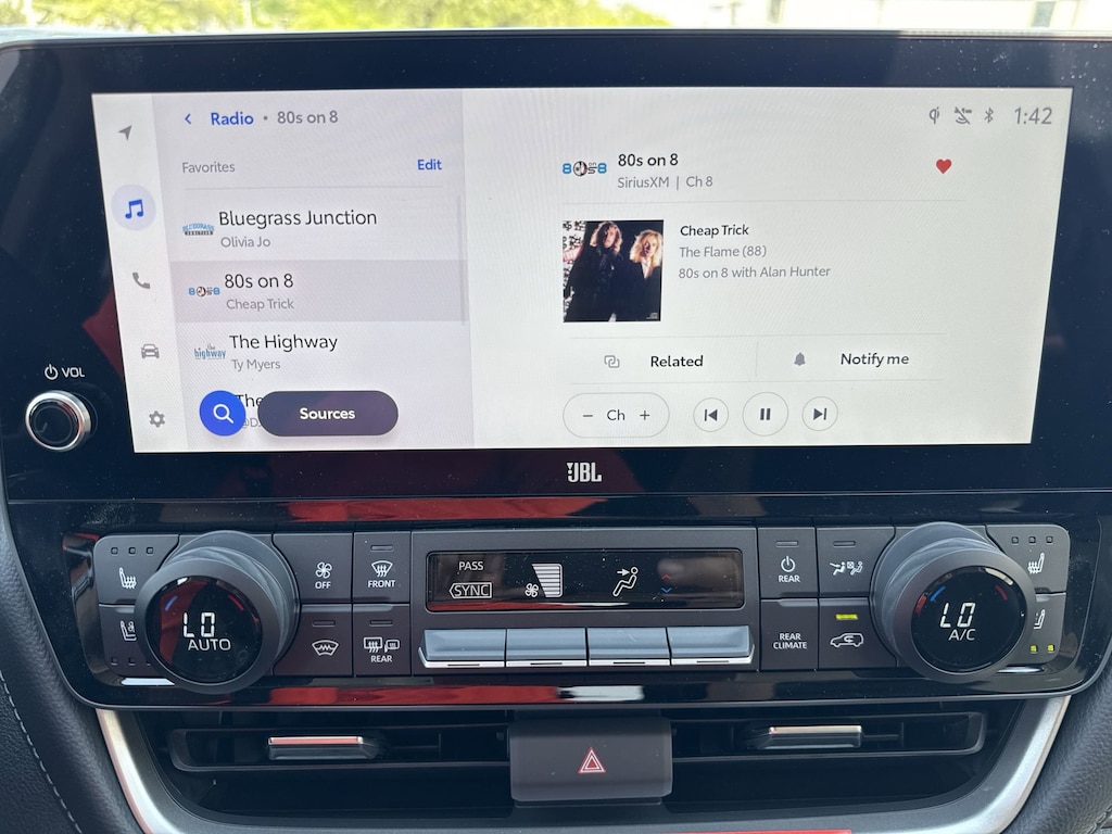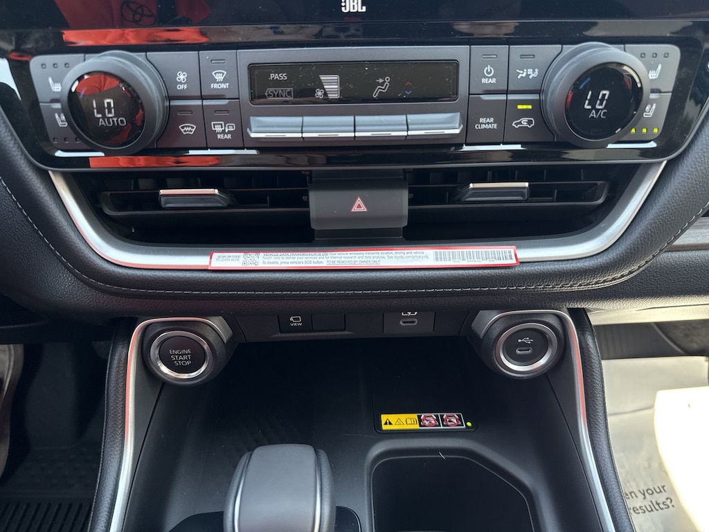 Features: Toyota Gold Certified Certified, ABS brakes, Active Cruise Control, Alloy wheels, Electronic Stability Control, Front dual zone A/C, Heated door mirrors, Heated front seats, Heated rear seats, Illuminated entry, Leather Seat Trim, Low tire pressure warning, Navigation System, Power Liftgate, Power moonroof, Remote keyless entry, Traction control, 11 Speakers, 3rd row seats: split-bench, 4-Wheel Disc Brakes, Air Conditioning, AM/FM radio: SiriusXM, Apple CarPlay/Android Auto, Auto High-beam Headlights, Auto-dimming Rear-View mirror, Automatic temperature control, Brake assist, Bumpers: body-color, Delay-off headlights, Driver door bin, Driver vanity mirror, Dual front impact airbags, Dual front side impact airbags, Emergency communication system: Safety Connect (up to 10-year trial subscription), Exterior Parking Camera Rear, Four wheel independent suspension, Front anti-roll bar, Front Bucket Seats, Front Center Armrest, Front fog lights, Front reading lights, Fully automatic headlights, Garage door transmitter: HomeLink, Heads-Up Display, Heated and Ventilated Front Seats, Heated steering wheel, Knee airbag, Leather Shift Knob, Leather steering wheel, Memory seat, Navigation system: Drive Connect Cloud Navigation (1-year trial subscription), Occupant sensing airbag, Outside temperature display, Overhead airbag, Overhead console, Panic alarm, Passenger door bin, Passenger vanity mirror, Power door mirrors, Power driver seat, Power passenger seat, Power steering, Power windows, Radio: 12.3" Toyota Audio Multimedia with JBL Audio, Rain sensing wipers, Rear air conditioning, Rear anti-roll bar, Rear reading lights, Rear window defroster, Rear window wiper, Reclining 3rd row seat, Security system, Speed control, Speed-sensing steering, Split folding rear seat, Spoiler, Steering wheel mounted audio controls, Tachometer, Telescoping steering wheel, Tilt steering wheel, Trip computer, Turn signal indicator mirrors, Variably intermittent wipers, Ventilated front seats, Ventilated rear seats, and Wheels: 20" Silver Multi-Spoke Aluminum.